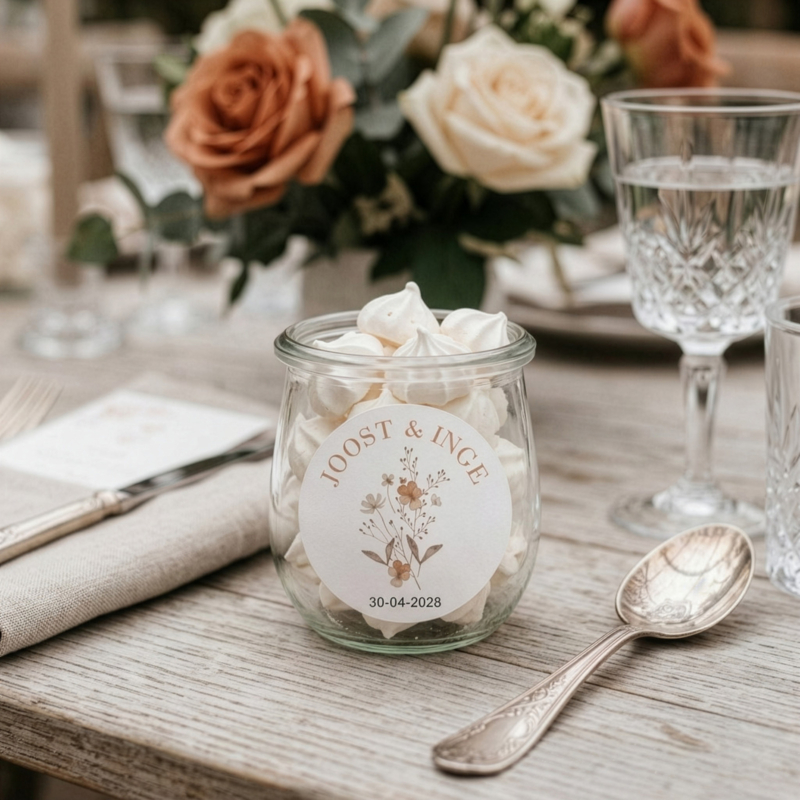 Gepersonaliseerde etiketten 'Veldbloemen 2' | 20 stuks | 5 cmGEPERSONALISEERDE ETIKETTEN BRUILOFT – VELDBLOEMEN 2Maak jullie bedankjes en post extra persoonlijk met deze stijlvolle gepersonaliseerde etiketten. Perfect om cadeautjes mee te versieren of als sluitzegel op een envelop. Een…