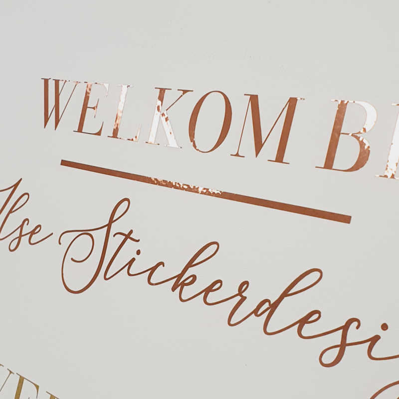 Kiezen jullie voor folie? Dan krijgt het bord een extra chique uitstraling. Houd hierbij rekening met een iets langere levertijd van circa 8 werkdagen en een kleine meerprijs.