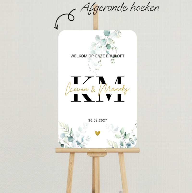 Welkomstbord bruiloft – Eucalyptus | Initialen met namen