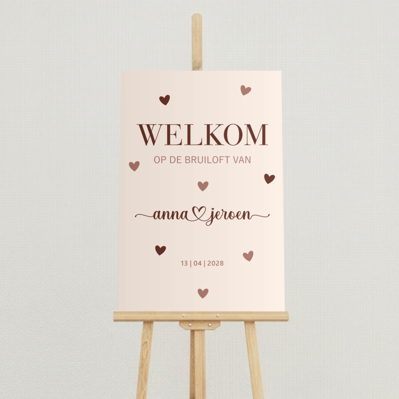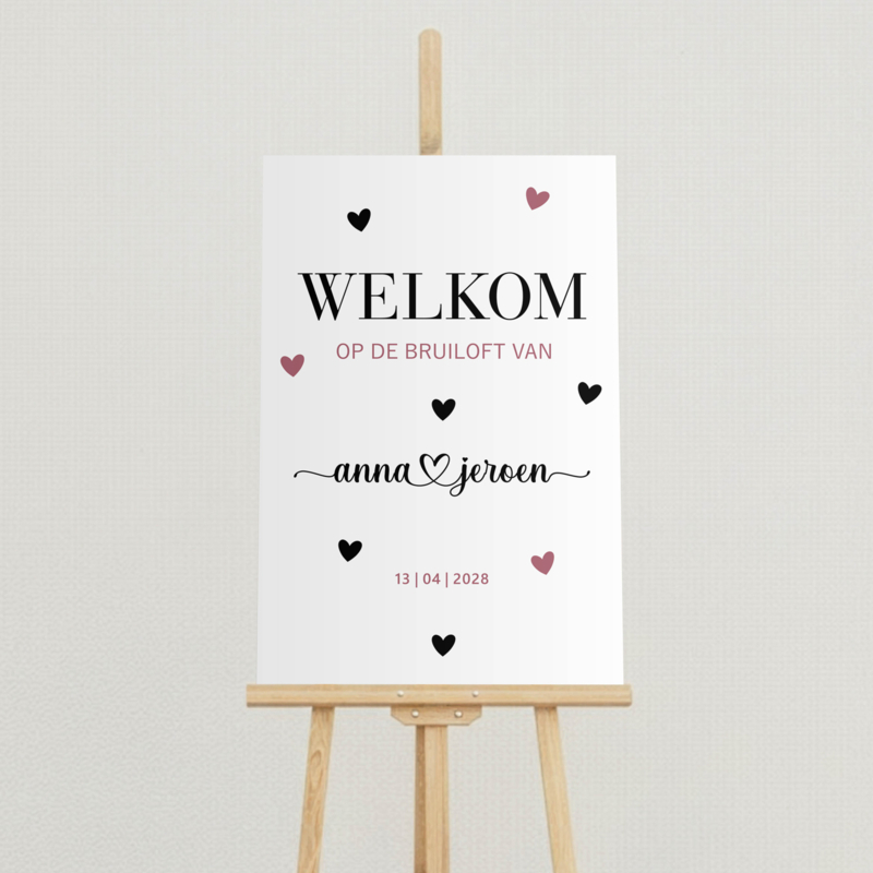 Welkomstbord Bruiloft 'Hartjes' | 40 x 60 cm