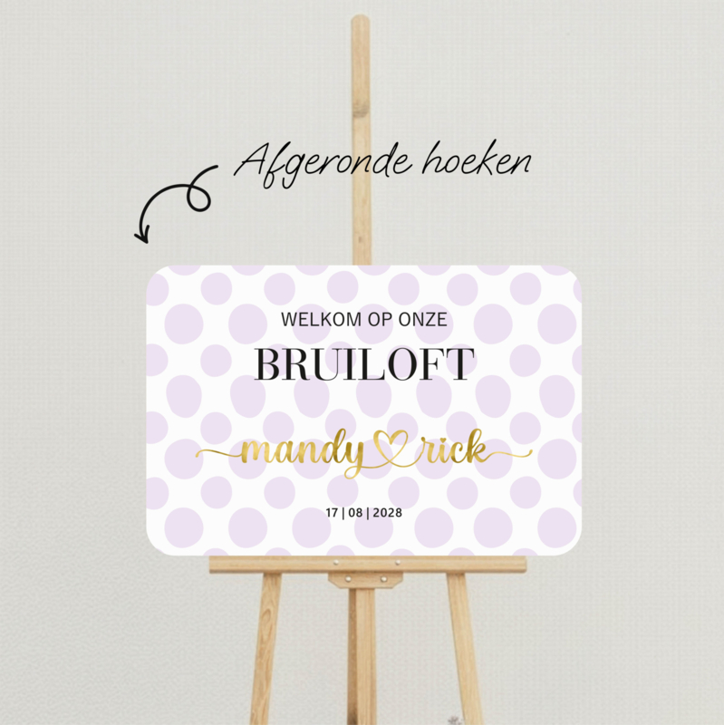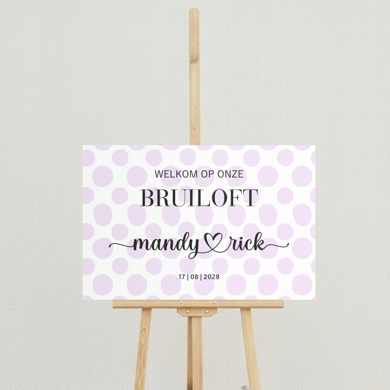 Welkomstbord bruiloft – Lila stippen