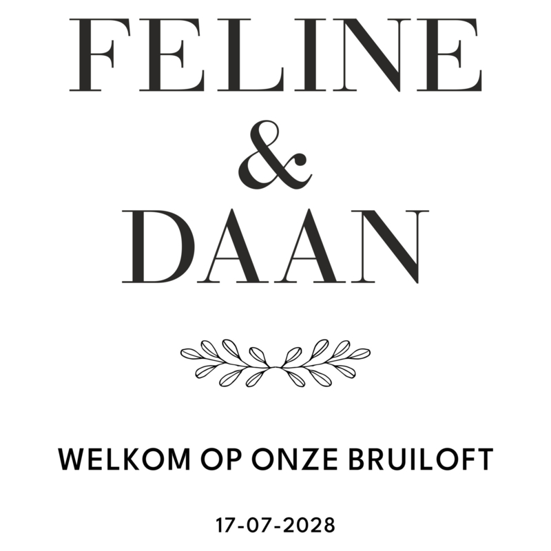 Sticker welkomstbord bruiloft 'Tekst en takje'.