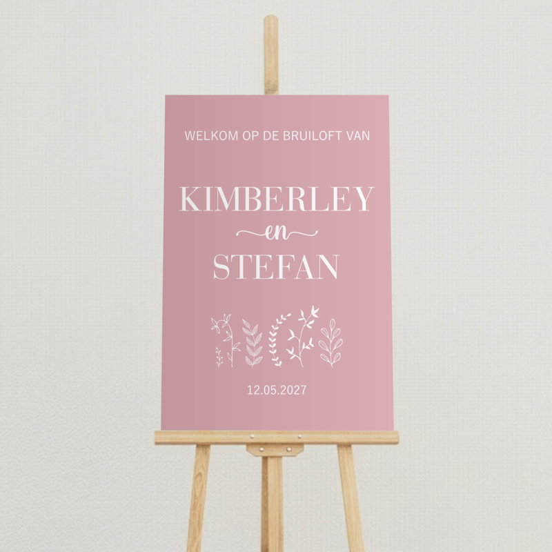 Het welkomstbord is verkrijgbaar in maar liefst vijf populaire kleurcombinaties, zodat je het kunt afstemmen op jullie kleurenthema.