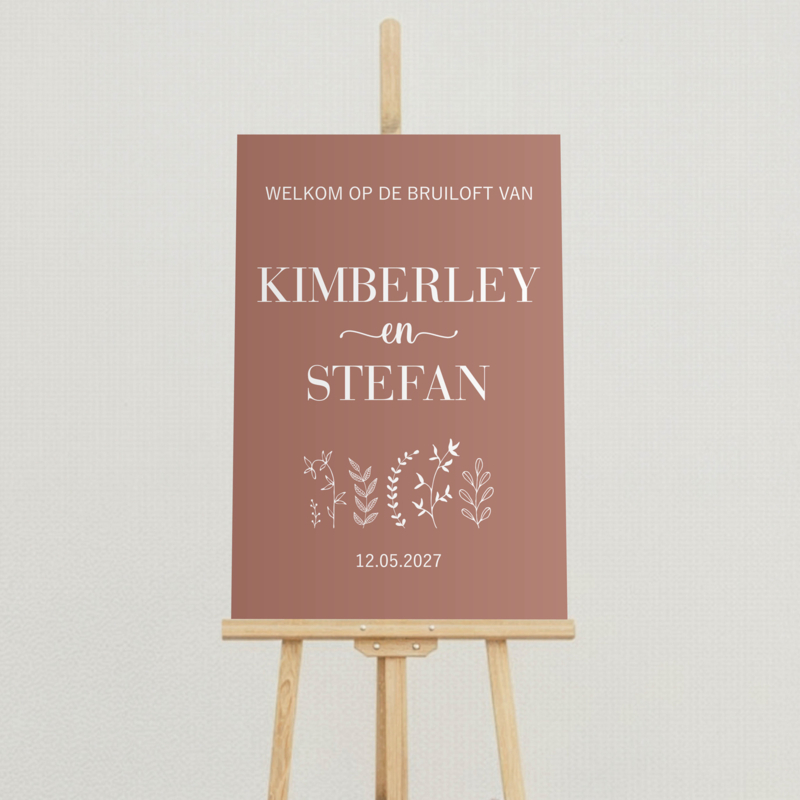 Dankzij het lichte maar stevige materiaal is het bord eenvoudig te plaatsen bij de entree van jullie ceremonie, feestlocatie of tuinbruiloft.