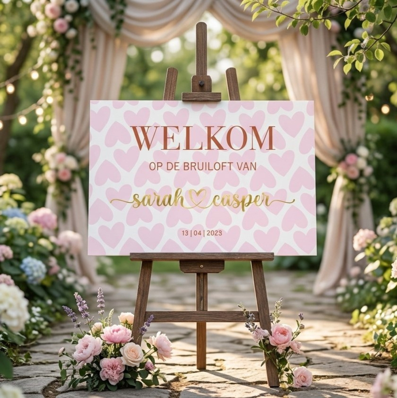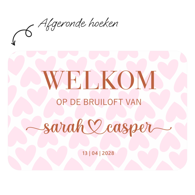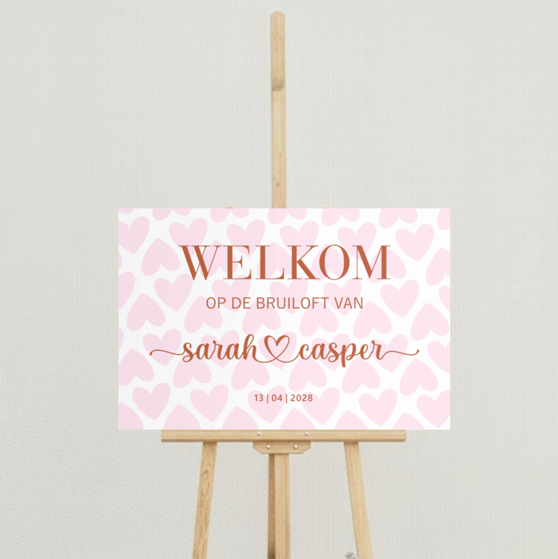 Welkomstbord Bruiloft 'Roze Hartjes' | 60 x 40 cm