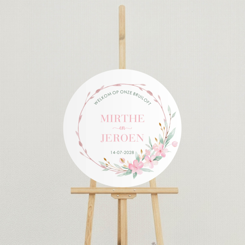 Welkomstbord bruiloft – Roze bloemen - Rond