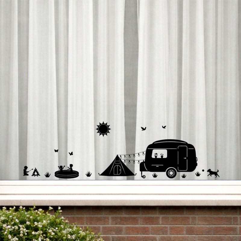 Uitbreidingsset Raamstickers Kamperen |HERBRUIKBAAR