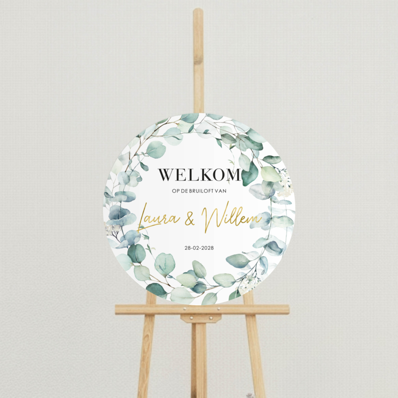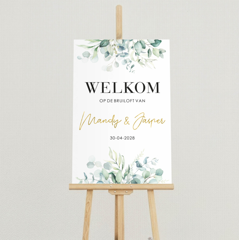 Plaats het bord bij de ingang van de ceremonie, receptie of feestzaal om jullie gasten meteen welkom te heten. Combineer met een guirlande, bloemstuk of kaarsen voor een extra sfeervol effect.